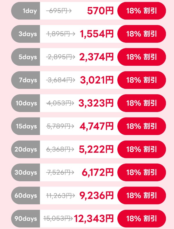 The time of use counts not by days but by hours, so you can use the service for the longest interpretable time. For example, a 5-day product activated on August 3rd, 10 PM can be used until August 8th, 10 PM. For other eSIM products, most of their usage time is shortened by the day. Therefore, if the product is activated at 10 PM, a day is spent just after 2 hours of use.